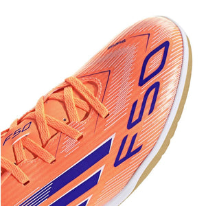 Find your fast to truly express yourself on the court. Feel the rush in adidas F50 boots engineered for speed. These Club football boots keep you comfortable on the move with a supportive Fiberskin upper and perforated tongue. Turn them over and you'll find a grippy rubber outsole that supports speedy play on flat indoor surfaces.