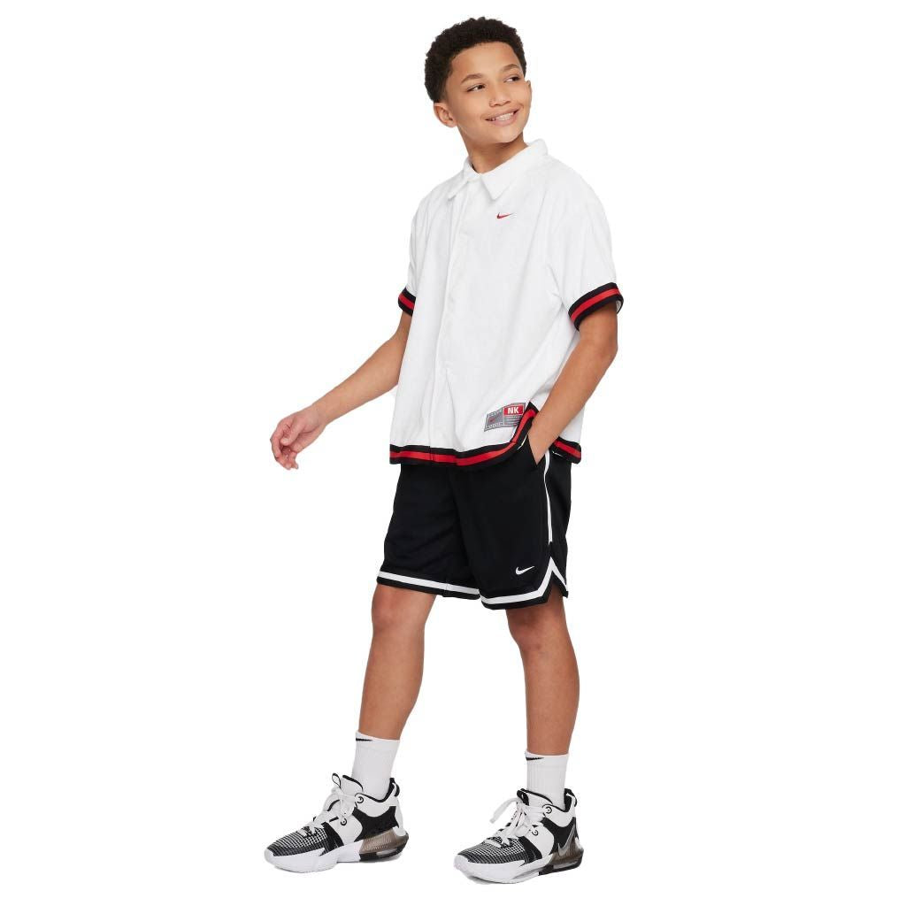 The Nike Dri-FIT DNA Boys' Basketball Shorts feature a loose fit, perfect for practicing lay-ups at home or celebrating a basketball game in the park. Made from a comfortable, moisture-wicking, quick-drying knit fabric, it helps keep you dry and focused every time you dribble, drive and hit the game-winning shot. When you're crossing the court for another dunk, the zippered pocket on the right hip keeps small essentials secure.