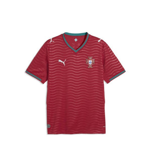 Le maillot domicile du Portugal capte l’énergie de l’océan et l’intensité d’une équipe prête à faire des vagues sur la plus grande scène. La base rouge emblématique est rehaussée d’un motif ondulé et de touches de vert, en hommage aux racines maritimes du pays et à son esprit audacieux.