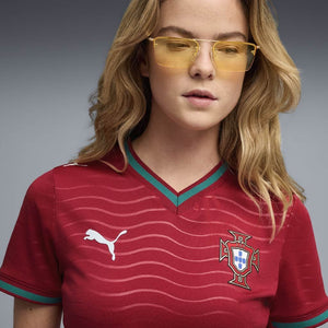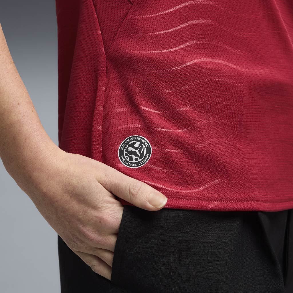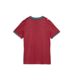 Le maillot domicile du Portugal capte l’énergie de l’océan et l’intensité d’une équipe prête à faire des vagues sur la plus grande scène. La base rouge emblématique est rehaussée d’un motif ondulé et de touches de vert, en hommage aux racines maritimes du pays et à son esprit audacieux. Ce design s’adresse à ceux qui sont nés pour explorer et qui jouent par amour du maillot. La version Authentique du maillot, prête pour la compétition, est conçue avec le tissu ULTRAWEAVE de PUMA et présente une coupe athlétique pensée pour des performances de niveau élite.