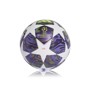 • Inspired by the Champions League, this ball features a design that promotes stable, accurate flight on every strike. The textured surface enhances feel and grip in various conditions. Its quality bladder and casing deliver consistent bounce and excellent shape retention. Perfect for matches and training on natural or synthetic grass.